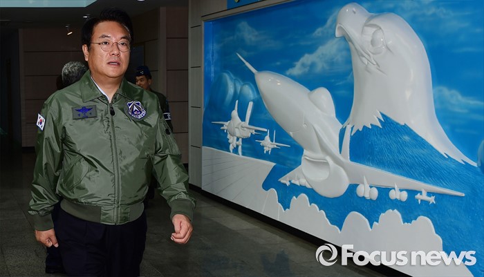 (오산=포커스뉴스) 정진석 새누리당 원내대표가 15일 오전 경기도 오산 공군작전사령부를 방문해 공군 방위태세 현황 등 보고를 받기 위해 이동하고 있다.