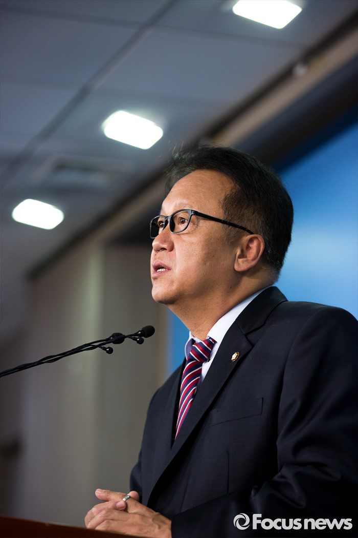 (서울=포커스뉴스) 민병두 더불어민주당 의원이 15일 오전 서울 여의도 국회에서 조선해운산업 부실화 진상 규명 위한 국정조사 추진을 촉구하는 기자회견을 하고 있다.