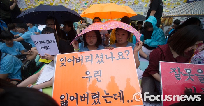 (서울=포커스뉴스) 15일 오후 서울 종로구 옛 일본대사관 앞에서 제1235차 일본군 위안부 문제해결을 위한 정기 수요집회가 열리고 있다.