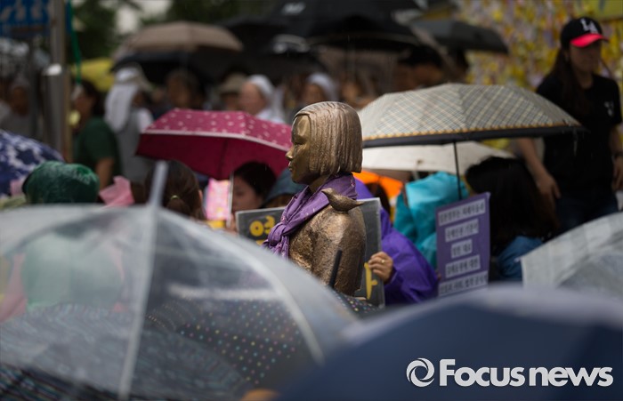 (서울=포커스뉴스) 15일 오후 서울 종로구 옛 일본대사관 앞에서 제1235차 일본군 위안부 문제해결을 위한 정기 수요집회가 열리고 있다.