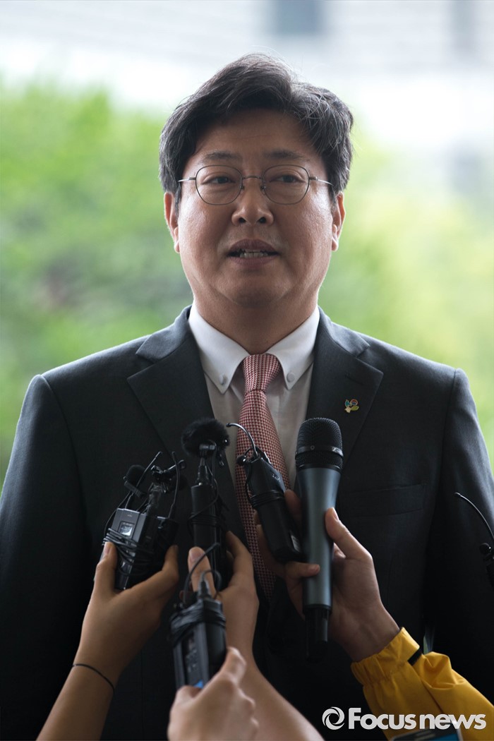 (서울=포커스뉴스) 더불어민주당 '어버이연합 등 불법자금지원 의혹 규명 진상조사 특별팀 (TF)' 소속 이춘석 의원이 15일 오후 서울 서초동 대검찰청 앞에서 취재진과 인터뷰를 하고 있다.