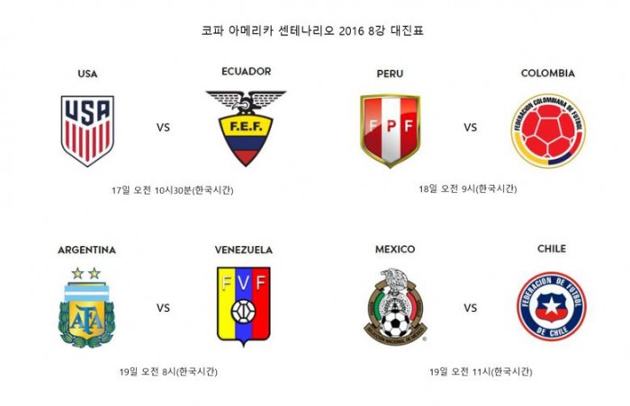 (서울=포커스뉴스) 2016 코파 아메리카 센테나리오 D조 조별라운드 3차전이 마무리되면서 8강 진출팀과 함께 대진까지 모두 확정됐다. D조 1위로 8강에 오른 아르헨티나는 C조 2위 베네수엘라와 맞붙는다. 아르헨티나는 브라질이 8강에 오르지 못하면서 유력한 우승 후보가 됐다.