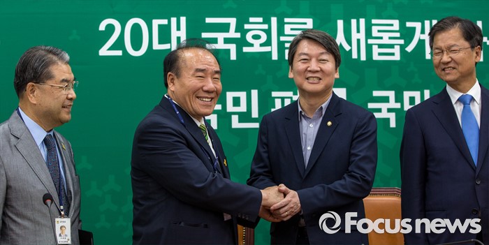 (서울=포커스뉴스) 안철수(오른쪽 두 번째) 국민의당 상임공동대표와 장휘국(왼쪽 두 번째) 전국시도교육감협의회 회장이 15일 오후 서울 여의도 국회에서 열린 '전국시도교육감협의회 감담회'에 참석해 악수 하고 있다.