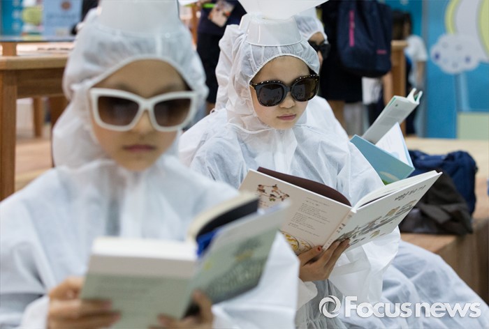 (서울=포커스뉴스) 15일 오후 서울 강남구 코엑스에서 열린 2016 서울국제도서전에서 상상발전소 관계자들이 독서를 장려하는 퍼포먼스를 하고 있다.