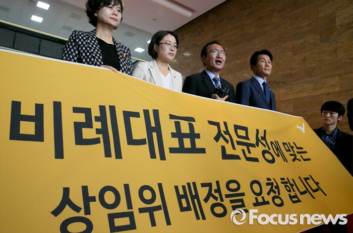 1순위로 지망한 상임위에 배정받지 못한 의원들이 다수 있다는 점에서 정의당의 이같은 요구가 현실적으로 받아들여지지 않을 것이라는 전망도 있다. 대신 상임위는 4년의 임기 중 상,하반기를 나눠 배정하는 만큼, 상반기에서 1순위에 배정받지 못한 추혜선·윤종오 의원 등이 하반기에는 배려받을 수 있을 것으로 보인다.(서울=포커스뉴스) 노회찬 정의당 원내대표와 의원들이 14일 오전 서울 여의도 국회 로텐더홀 계단 앞에서 상임위 배정과 관련 기자회견을 하고 있다. 왼쪽부터 이정미 원내수석부대표, 추혜선 의원, 노 원내대표, 윤소하 의원. 2016.06.14 박동욱 기자 정의당 의원들이 14일 오전 서울 여의도 국회 로텐더홀 계단 앞에서 상임위 배정 관련 기자회견을 마친 뒤 농성을 하고 있다. 왼쪽부터 이정미 원내수석부대표, 추혜선 의원, 노회찬 원내대표, 윤소하 의원. 2016.06.14 강진형 기자 (서울=포커스뉴스) 13일 오전 서울 여의도 국회에서 열린 20대 국회 개원식에 참석한 정세균 국회의장이 국기에 대한 경례를 하고 있다. 2016.06.13 사진공동취재단