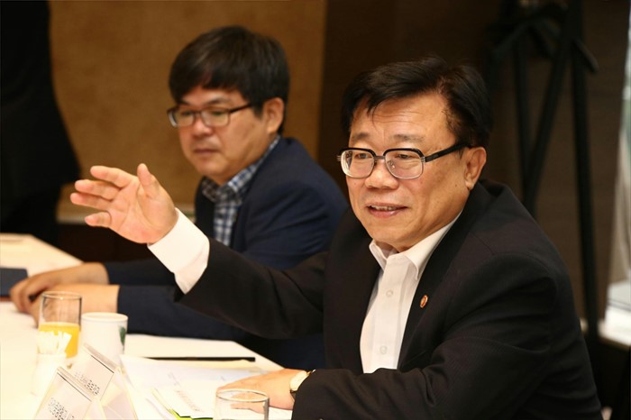 (서울=포커스뉴스) 이동필 농림축산식품부 장관이 15일 서울 서초구 더팔레스호텔에서 농축산물 유통분야 오피니언리더를 초빙, 농축산물 유통분야 현안에 대한 간담회를 주재하고 있다. <사진제공=농림축산식품부>