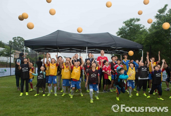(서울=포커스뉴스) 한국GM의 쉐보레는 15일 소외계층 어린이들과 지역사회를 위해 쉐보레-초록우산 어린이재단 풋살 경기장 기증식을 가졌다.