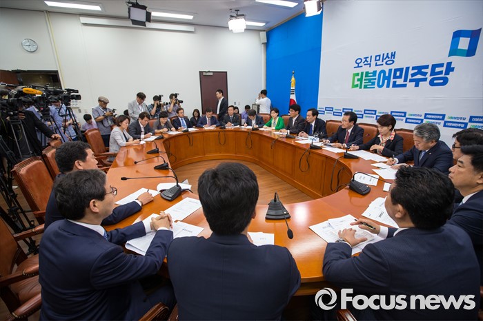 (서울=포커스뉴스) 우상호(오른쪽) 더불어민주당 원내대표와 박완주 원내수석부대표가 16일 오전 서울 여의도 국회에서 열린 정책조정회의에 참석해 대화를 나누고 있다.