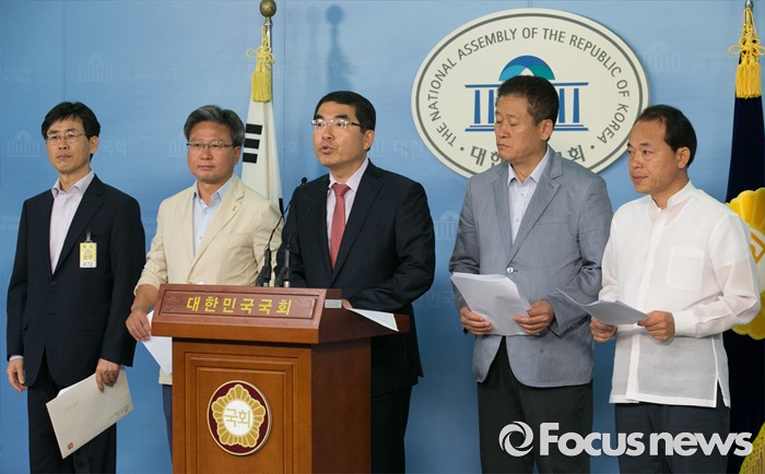 (서울=포커스뉴스) 양기대 광명시장, 채인석 화성시장 등 경기도 기초자치단체장들이 16일 오전 서울 여의도 국회 정론관에서 누리과정 갈등 해결을 위한 입법 촉구 기자회견을 하고 있다.
