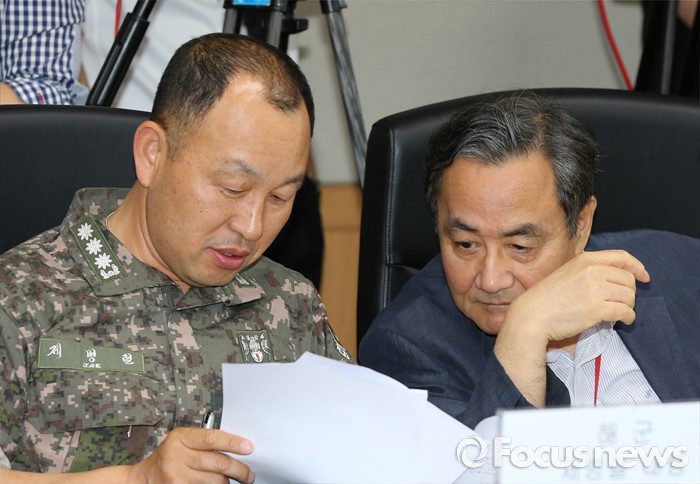 (세종=포커스뉴스) 김영석 해양수산부 장관 주재로 16일 오전 세종시 정부세종청사 해수부 중회의실에서 열린 세월호 공정 점검회의에서 참석자들이 회의에 앞서 논의를 하고 있다.