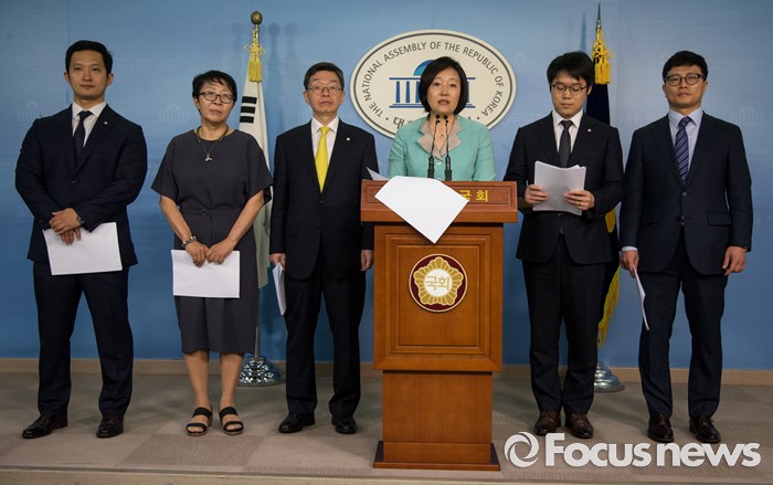 (서울=포커스뉴스) 16일 오전 서울 여의도 국회 정론관에서 박영선 더불어민주당 의원이 가습기 살균제 피해와 같은 대기업의 반사회적 불법행위를 막기 위한 '징벌적 배상법' 제정안 발의에 대한 기자회견을 하고 있다.
