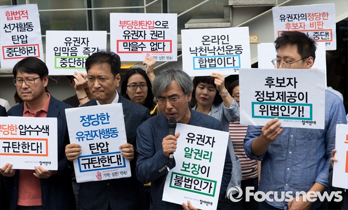 (서울=포커스뉴스) 16일 오전 서울 종로구 참여연대 앞에서 2016총선시민네트워크와 참여연대가 시민단체 압수수색을 규탄하는 기자회견을 하고 있다.