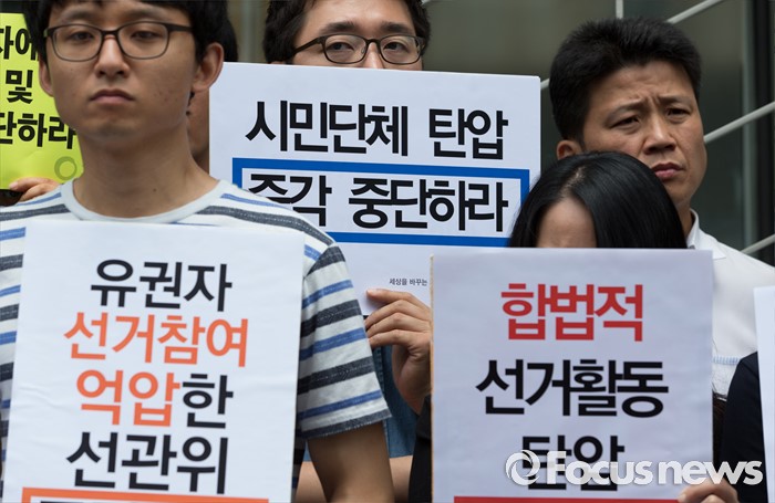 (서울=포커스뉴스) 16일 오전 서울 종로구 참여연대 앞에서 2016총선시민네트워크와 참여연대가 시민단체 압수수색을 규탄하는 기자회견을 하고 있다.