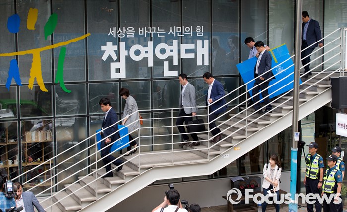 (서울=포커스뉴스) 공직선거법 위반 혐의를 수사하고 있는 경찰이 16일 오후 서울 종로구 참여연대 압수수색을 마치고 차량으로 압수품을 옮기고 있다.
