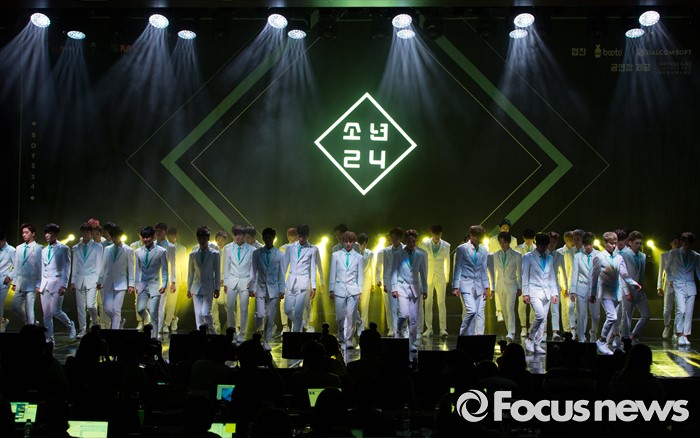(서울=포커스뉴스) 16일 오후 서울 여의도구 63빌딩 그랜드볼룸에서 열린 보이그룹 오디션 프로그램 '소년24 프로젝트' 제작발표회에서 49명의 출연자들이 공연을 선보이고 있다.