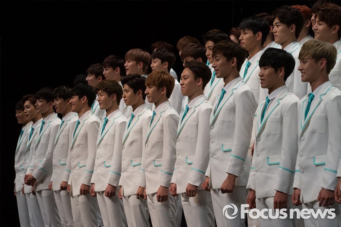 (서울=포커스뉴스) 16일 오후 서울 여의도구 63빌딩 그랜드볼룸에서 열린 보이그룹 오디션 프로그램 '소년24 프로젝트' 제작발표회에서 49명의 출연자들이 포토타임을 갖고 있다.