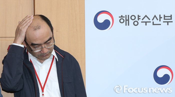 (세종=포커스뉴스) 장옌 상하이샐비지 부사장이 16일 오후 세종시 정부세종청사 해양수산부 기자실에서 세월호 선체인양에 대한 브리핑에서 굳은표정을 보이고 있다.
