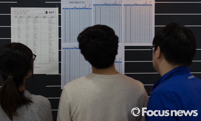 (서울=포커스뉴스) 지방직 9급 공무원 필기시험을 이틀 앞둔 15일 오후 서울 동작구 공단기 노량진학원에서 시험 응시자들이 학습 모의시험 점수를 확인하고 있다.