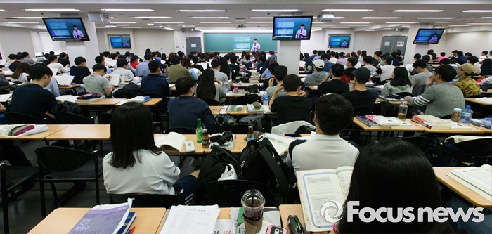 공단기 학원 1관에서 가장 큰 강의실의 좌석수는 550석 정도다. 평소 같았으면 강의를 듣기 위해 수험생으로 붐볐을 강의실은 이날 유독 빈 자리가 많았다. 지방직 공무원 시험을 치르기 위해 지방에 내려간 학생들이 다수 있었기 때문이다.