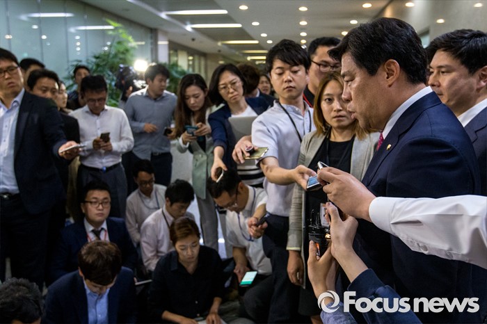 (서울=포커스뉴스) 김선동 새누리당 혁신비대위 비서실장이 16일 오후 서울 여의도 국회에서 김희옥 혁신비상대책위원장의 거취 관련 에 대해 입장 발표 하고 있다.