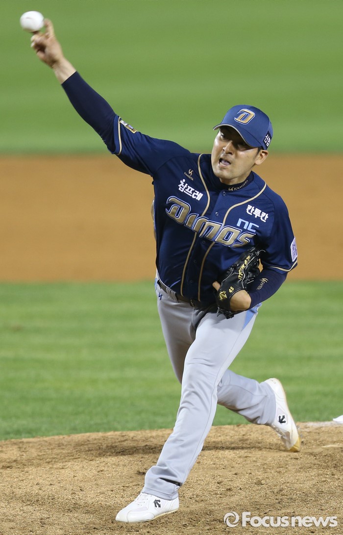 (서울=포커스뉴스) 16일 서울 잠실구장에서 열린 2016 프로야구 NC-LG 경기에서 NC 마무리 투수 임창민이 3-0의 승리를 지키는 투구를 하고 있다.