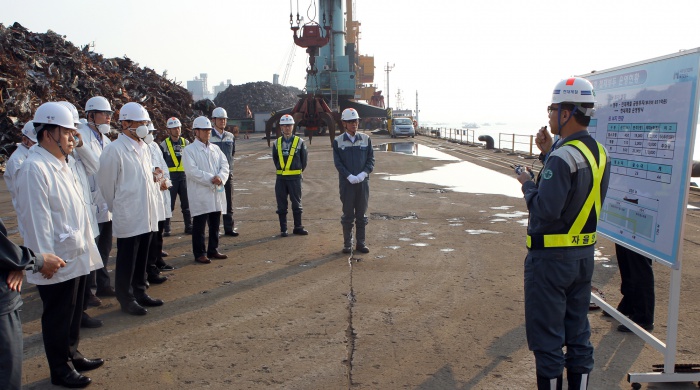 (인천=포커스뉴스) 김용환 원자력안전위원회 위원장이 16일 인천시 현대제철 인천사업소를 방문해 재활용고철 방사선감시기 운영 현장을 시찰하고 있다. <사진제공=원자력안전위원회>