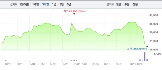 텔콘은 17일 오전 9시33분 현재 전일 대비 0.23%(50원) 하락한 2만1650원에 거래되고 있다. 텔콘은 13~16일에도 8~30%의 낙폭을 기록했다.