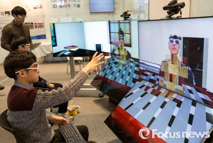 한콘진 관계자는 "사용자가 이 장비를 통해 건축 부재와 구조원리에 대한 이해를 높일 수 있을 것"이라고 말했다.(서울=포커스뉴스) 26일 오전 서울 강남구 코엑스홀에서 열린 '2015 창조경제박람회'에서 관람객들이 3D 몽타주 기술을 체험하고 있다. 2015.11.26 양지웅 기자