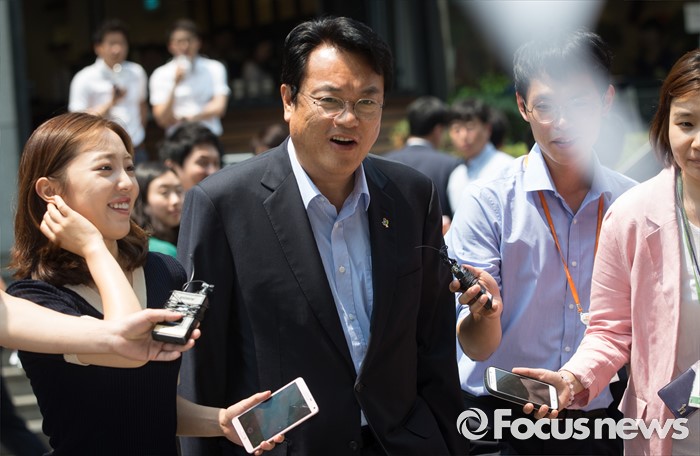 | △ 취재진 질문 받으며 음식점 들어서는 정진석 |