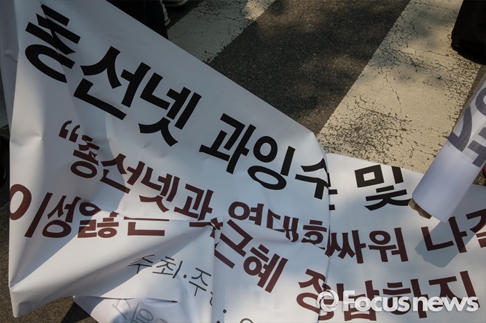 (서울=포커스뉴스) 17일 오후 서울 종로구 서울지방경찰청 앞에서 총선네트워크(총선넷) 회원들이 경찰 과잉수사 및 압수수색 규탄 기자회견을 하고 있다.