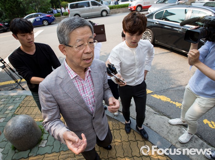 (서울=포커스뉴스) 칩거 중으로 알려진 김희옥 새누리당 혁신비상대책위원장이 17일 오후 서울 논현동의 자택으로 향하며 취재진의 질문에 답하고 있다.