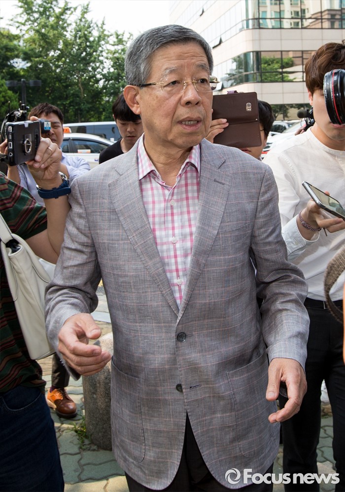 (서울=포커스뉴스) 칩거 중으로 알려진 김희옥 새누리당 혁신비상대책위원장이 17일 오후 서울 논현동의 자택으로 향하며 취재진의 질문에 답하고 있다.