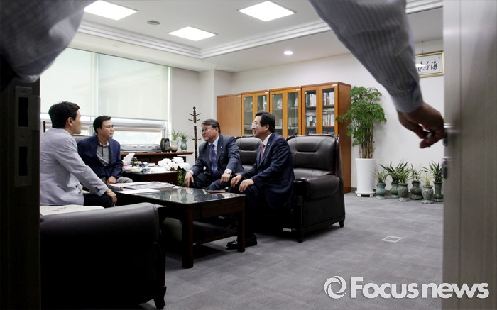 (서울=포커스뉴스) 17일 오후 서울 여의도 국회 의원회관 김태흠 새누리당 의원실에서 조원진, 이장우, 김태흠, 김진태 의원 등 친박계 의원들이 탈당파 복당 문제와 관련 논의를 하고 있다.