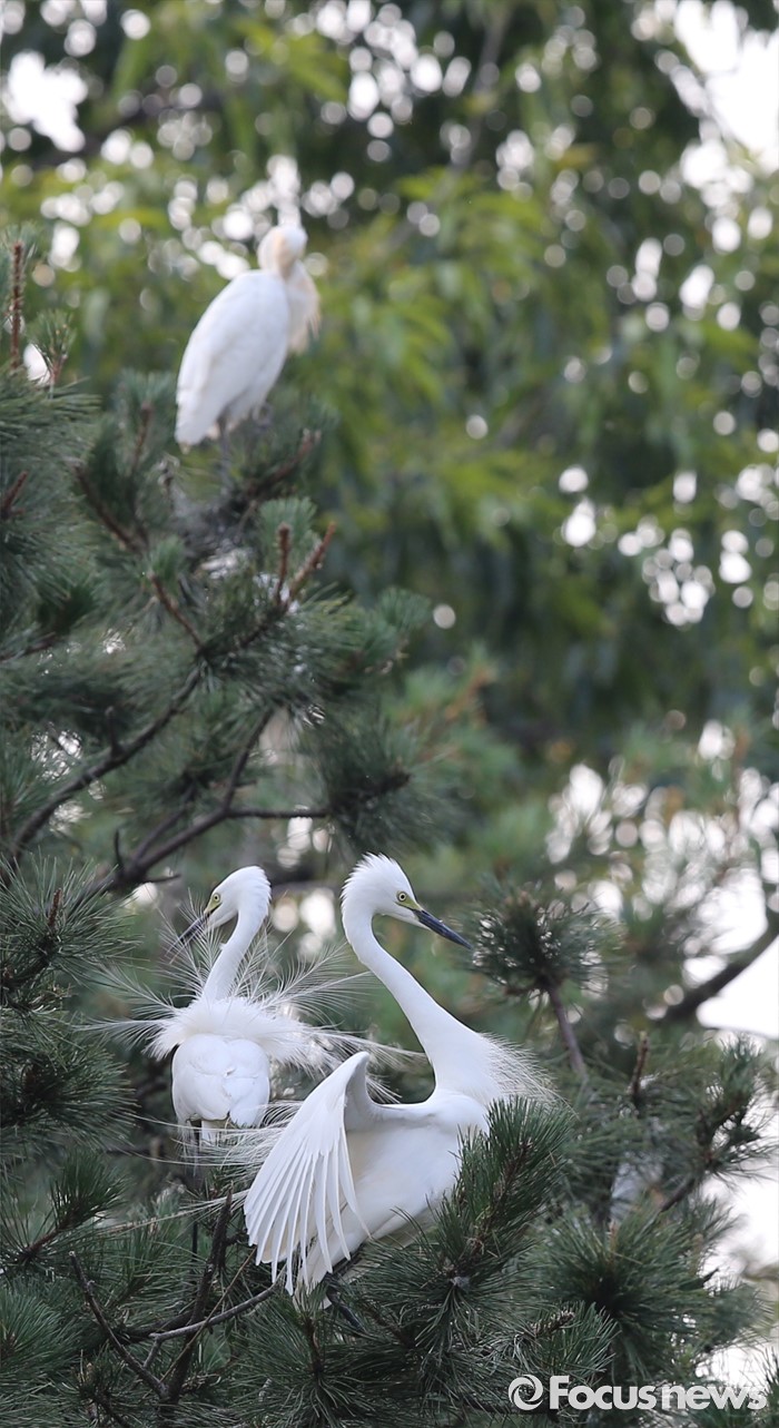 (청주=포커스뉴스) 17일 오후 충북 청주시 서원대학교 야산에 백로 수 백마리가 둥지를 틀고 있다.