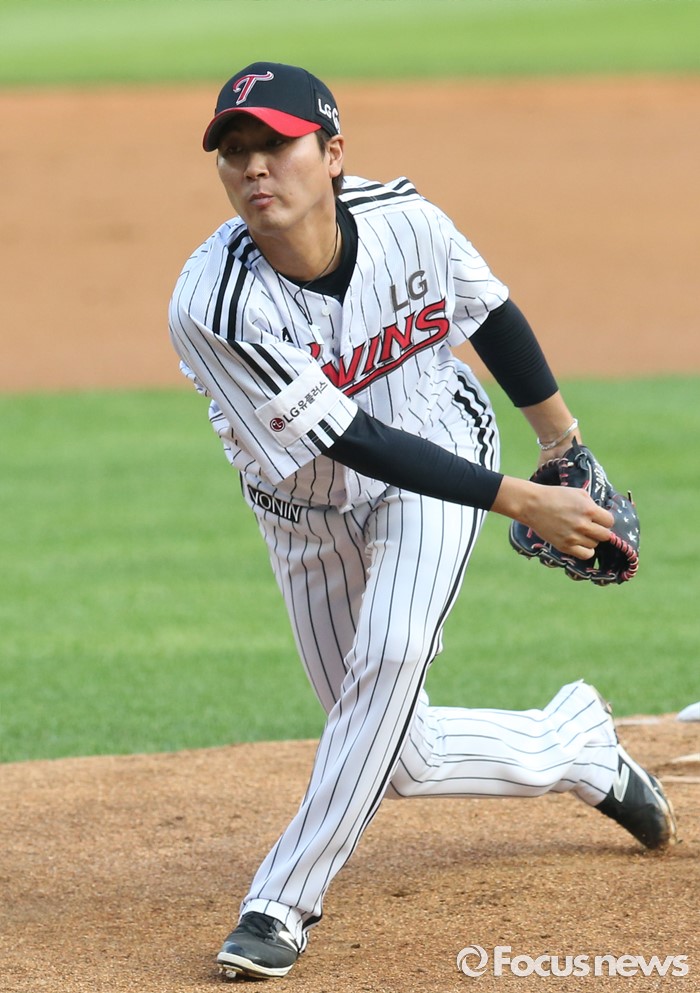 (서울=포커스뉴스) 17일 서울 잠실구장에서 열린 2016 프로야구 KIA-LG 경기에서 1회초 LG 선발투수 우규민이 투구하고 있다.