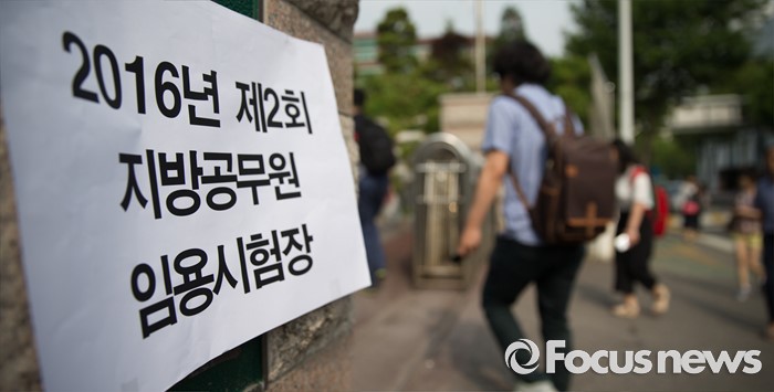 (인천=포커스뉴스) 2016년 제2회 지방공무원 임용 필기시험이 실시된 18일 오전 인천 연수구 청학공업고등학교에서 수험생들이 시험실으로 들어서고 있다.