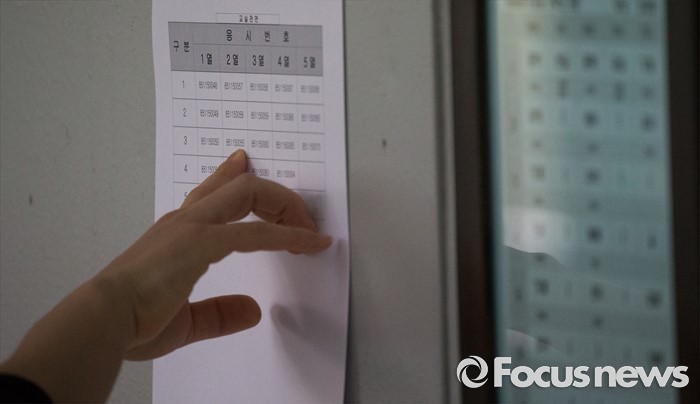 (인천=포커스뉴스) 2016년 제2회 지방공무원 임용 필기시험이 실시된 18일 오전 인천 연수구 청학공업고등학교에서 한 수험생이 시험실 자리를 확인하고 있다.