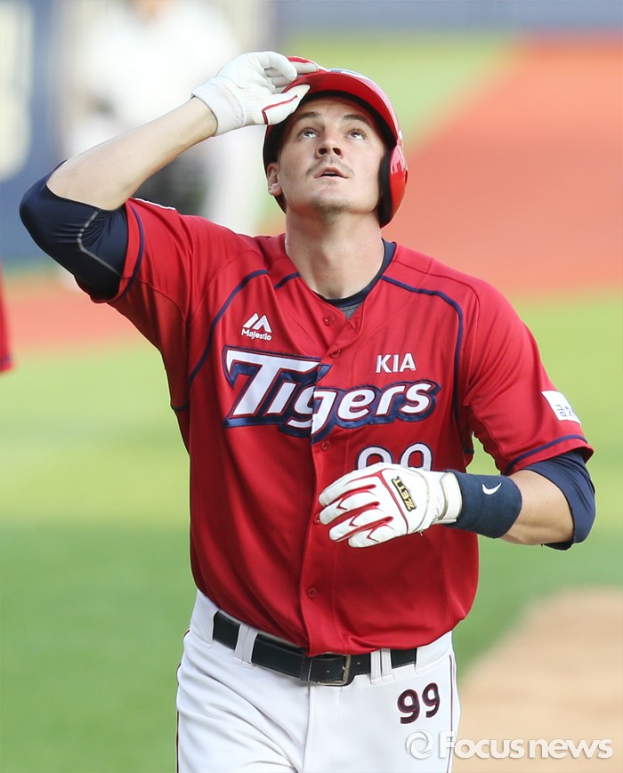 | △ 하늘을 향해 세레머니하는 KIA 필 |