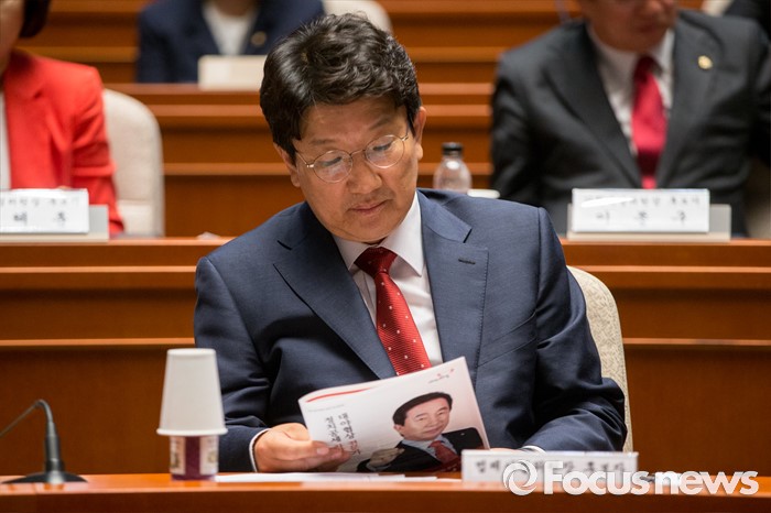 그러면서 김 위원장의 사퇴 권고를 수용하지 않는 것에 대해 "개인적인 욕심으로 사퇴 요구를 거부한 것이 아니고, 많은 국민과 당원들의 기대에 부응하기 위해 더욱 낮은 자세로 당을 위해 뼈를 깎는 노력으로 책임과 의무를 다하기 위한 것"이라며 "비대위의 의결이 있을 때까지 주어진 소임을 다하며 살신성인의 자세로 최선을 다해 나갈 것"이라고 말했다.(서울=포커스뉴스) 법사위원장을 맡게 된 권성동 새누리당 의원이 13일 오전 서울 여의도 국회에서 열린 의원총회에서 후보자 공약집을 보고 있다. 2016.06.13 김흥구 기자