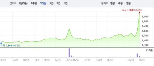 철도 신호제어 시스템 및 지능형 교통시스템 전문업체인 대아티아이는 20일 오전 9시11분 현재 전일 대비 22.50%(365원) 상승한 1965원에 거래되고 있다. 같은 시각 토목, 수중, 철근콘크리트 업체인 우원개발은 전일 대비 29.91%(1600원) 오른 6950원에 거래 중이다.
