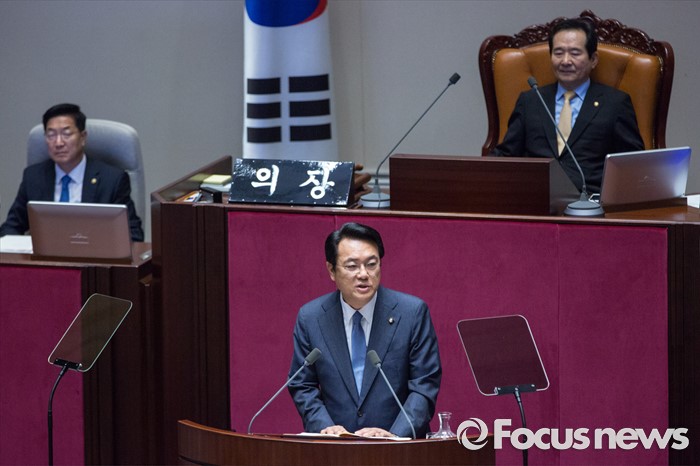 (서울=포커스뉴스) 정진석 새누리당 원내대표가 20일 오전 서울 여의도 국회에서 열린 본회의에 참석해 교섭단체 대표연설을 하고 있다.