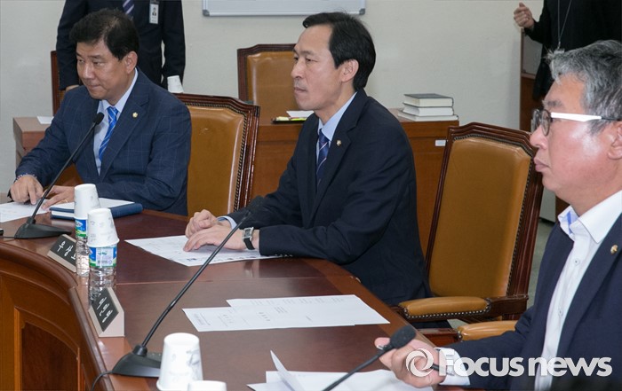 (서울=포커스뉴스) 20일 오후 서울 여의도 국회에서 열린 정보위원회 전체회의에 김병기(왼쪽부터) 더불어민주당 의원, 우상호 원내대표, 조응천 의원이 자리하고 있다.