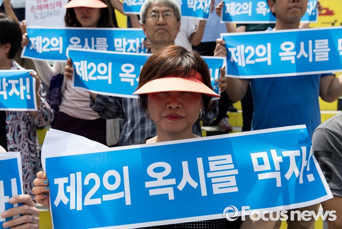 (서울=포커스뉴스) 20일 오후 서울 종로구 세종문화회관 앞 계단에서 환경운동연합과 시민사회단체들이 가습기 살균제 참사 전국네트워크 출범 기자회견을 하고 있다.