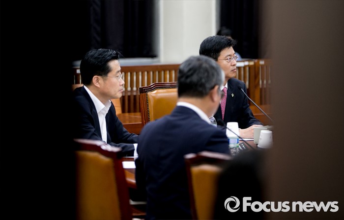 (서울=포커스뉴스) 20일 오후 서울 여의도 국회에서 열린 정보위원회 전체회의에 참석한 최윤수 국가정보원 2차장이 현안 보고를 하고 있다. 왼쪽부터 이태규 국민의당 의원, 조응천 더불어민주당 의원, 최 2차장.