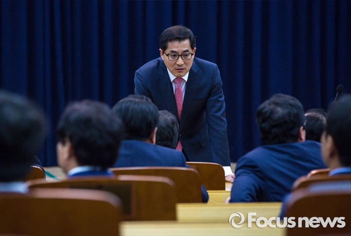 (서울=포커스뉴스) 박대출 새누리당 의원이 20일 오후 서울 여의도 국회의원회관에서 열린 친박계 초재선 의원 모임에 참석해 발언 하고 있다.