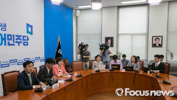 (서울=포커스뉴스) 박완주(가운데) 더불어민주당 원내수석부대표, 김관영(왼쪽) 국민의당 원내수석부대표, 이정미 정의당 원내수석부대표가 20일 오후 서울 여의도 국회에서 현안 관련 회동을 열고 취재진에게 설명하고 있다.
