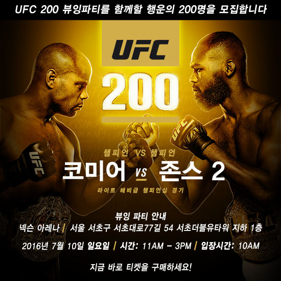 (서울=포커스뉴스) 종합격투기단체 UFC가 팬들과 함께하는 'UFC 200: 코미어 vs 존 존스 2 뷰잉 파티'를 연다.