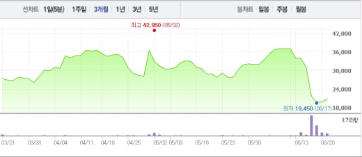 텔콘은 자회사 2곳의 합병 추진 소식에도 불구, 13~17일 8~30%의 낙폭을 기록하며 뚜렷한 하락세를 나타냈다. 20일에는 장 초반 소폭 상승세를 보였지만 이후 보합세를 기록하며 전 거래일과 동일한 1만9800원에 거래를 마쳤다.