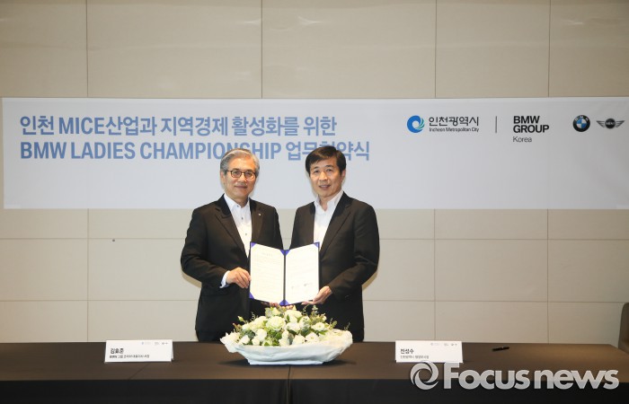 (서울=포커스뉴스) BMW그룹 코리아는 20일 영종도 드라이빙 센터에서 인천광역시와 'BMW 레이디스 챔피언십' 골프대회를 인천지역에서 개최하기로 하고, MICE(국제회의와 관광을 결합한 산업) 산업발전과 활성화를 위한 업무 협약을 체결했다.