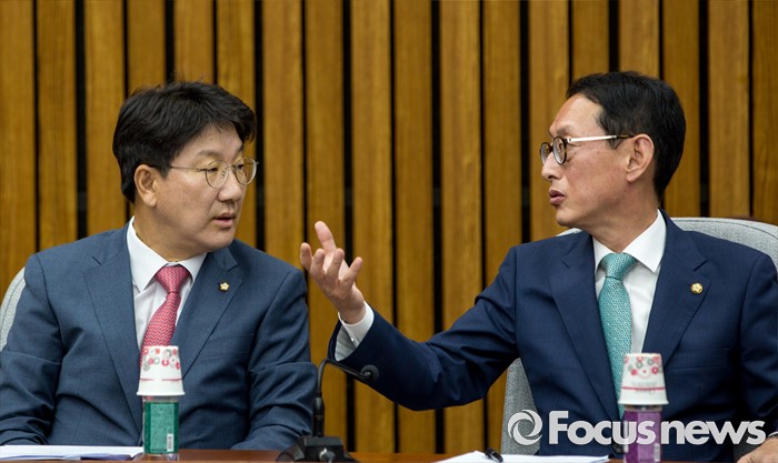 | △ 대화하는 권성동 사무총장-김도읍 원내수석부대표 |